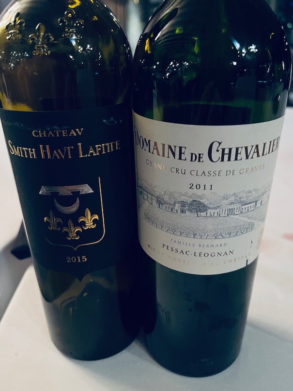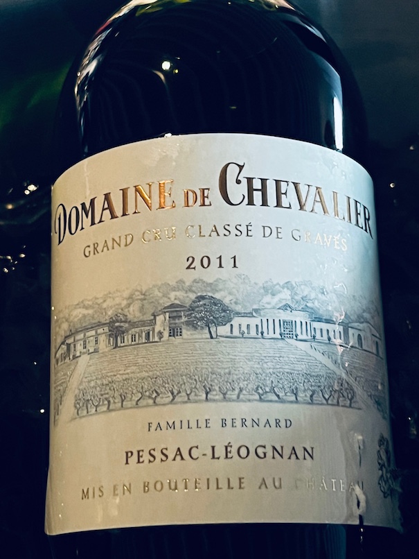 2011 DOMAINE DE CHEVALIER BLANC Label says 75 SB/25S (recent 2017 was 70/30) showing developed Semillon character creamy and classy so intense. Aging well here in cork before Olivier Bernard changed to Diam for whites in 2015 & reds in 2016. Lovely bottle.