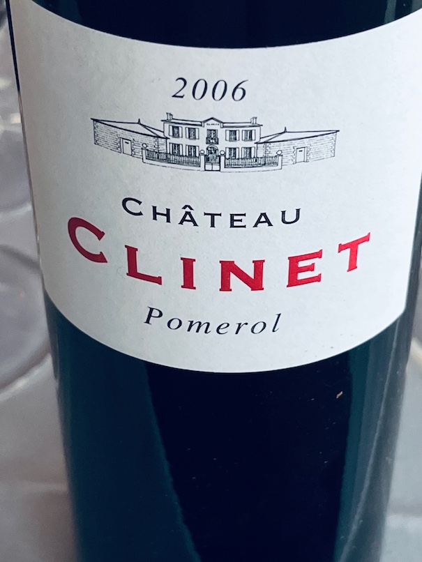 2006 CHÂTEAU CLINET POMEROL: Red with a paler edge shows open cherry pepper aromas with herbaceous fig notes. Some charm but the greener year shows in the flavours and less alcohol 13.5 abv. Simpler. OK. Drink.