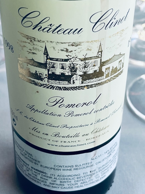 1998 CHÂTEAU CLINET POMEROL: Dark with roasty plum nose the best part. Softening earthy palate but not meshed together a bit disjointed. Missed the best features of a splendid Right Bank vintage. OK to open now.