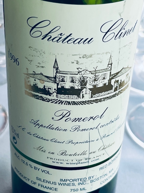 1996 CHÂTEAU CLINET POMEROL: Pale rim but bigger fruit than expected. Roasted coffee but rustic with ripe prunes. A bit coarse with the tannins seeming almost over extracted. Unlikely to improve much.