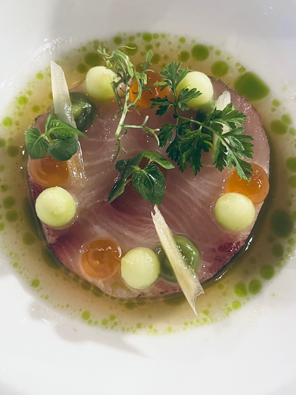 We enjoyed three White Bordeaux from Pessac-Leognan with some age a compelling combination served with a wonderful Yellowtail Crudo accented by Yuzu gel prepared by talented Chef Alex Kim & his brigade: