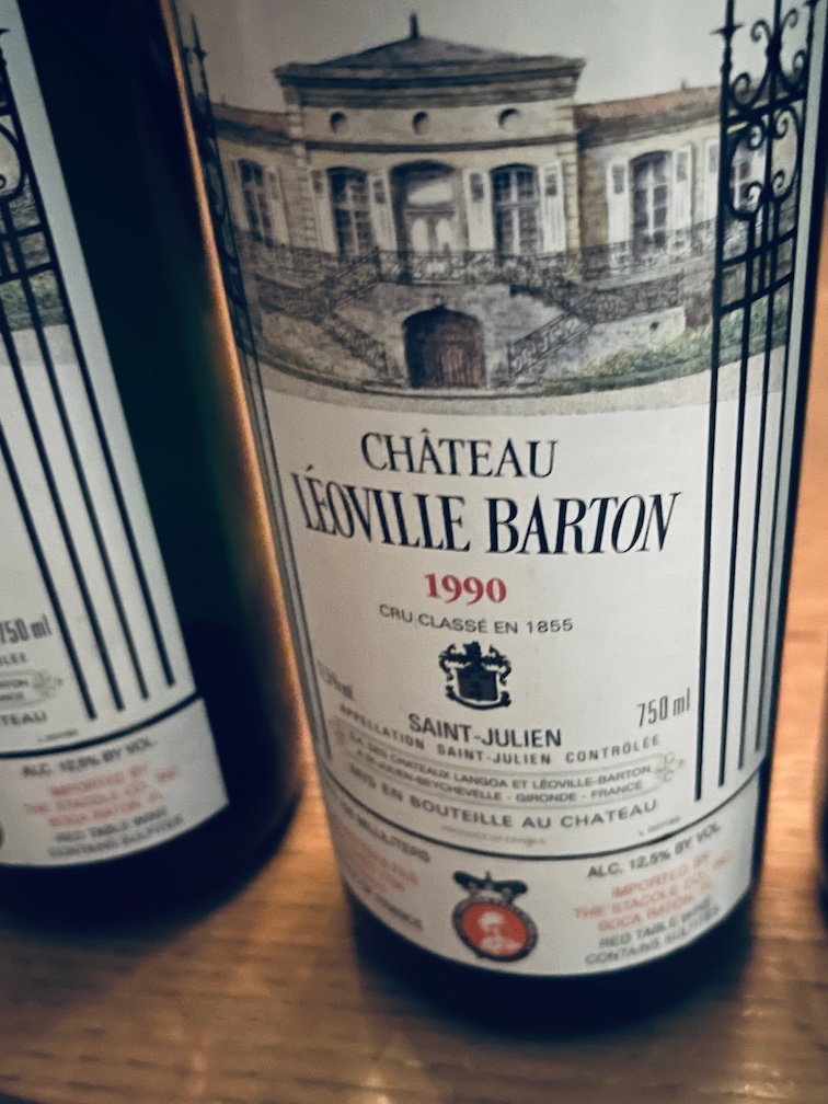 1990 CHÂTEAU LÉOVILLE BARTON: First of three St. Juliens showing much better than at the vertical of this property last month – linked here at posting October 7, 2025. Big fruit depth and energetic concentrated “Claret”. Perhaps a shade too young and earthy with not enough elegance but is really solid. Believe this will improve and throw off some of that still big fruit, acids, and young tannins still not perfectly integrated. No rush. Potential.