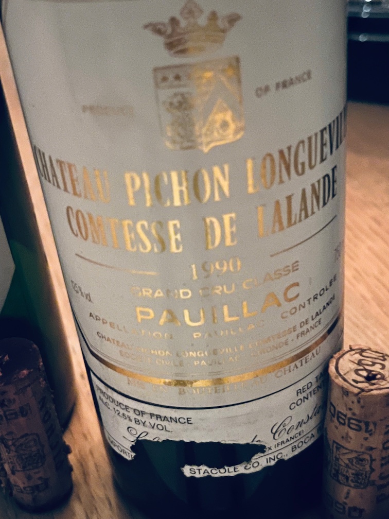 1990 CHÂTEAU PICHON LALANDE: A problem year with the General passing and the winemaker changing but mainly the omission of the needed press wine for depth and more body. Nevertheless every time I try this wine recently it shows the Pichon Comtesse darker than I expected with old days elegance and definitely the unique terroir. Best bottle yet though the fruit is starting to dry up so enjoy it currently. Nicolas is looking now mostly for freshness with a more prominent Cabernet focus. Toast to May de Lencquesaing 100th birthday on May 17, 2025!