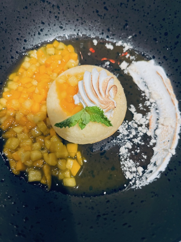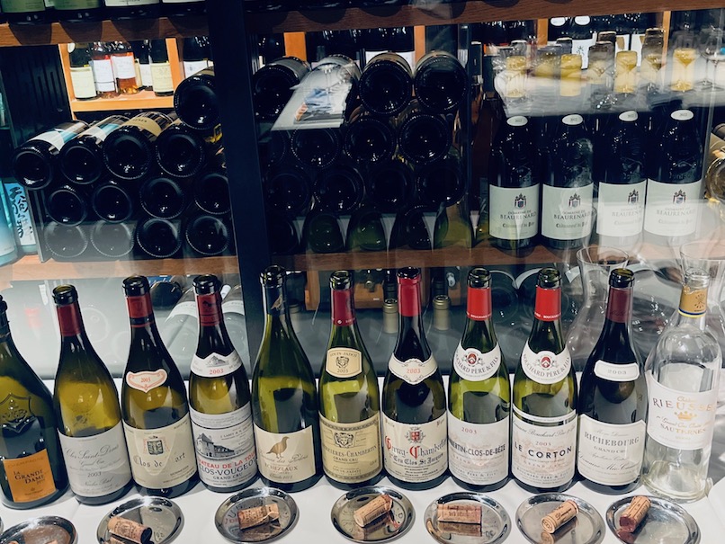 We started with 2008 VEUVE CLICQUOT PONSARDIN LA GRANDE DAME BRUT the first one from winemaker Dominique Dermarville from this classic year with the highest percentage of Pinot Noir at 92 & 8 Chardonnay all Grand Cru vineyards. Impressed how fresh and youthful it tasted with fuller depth plus elegance as it developed in the glass. Delicious. Exquisite with the stylish scallop starter. No rush. We finished up with 2009 CHATEAU RIEUSSEC SAUTERNES full rich sweet caramel notes that was smartly paired with a dessert featuring pineapple, mango, and coconut macaroon. The main event was these nine high classified 2003 red Burgundies in two flights: