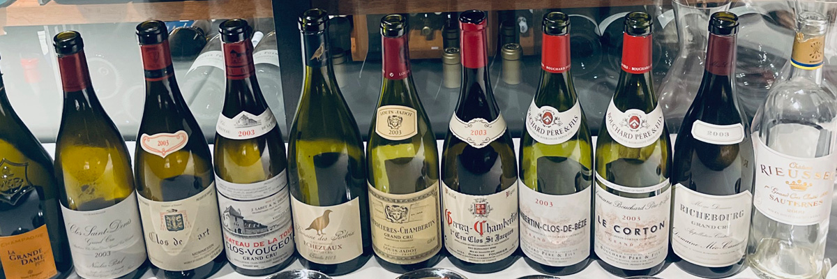 The 2003 vintage in Europe was a harbinger of the warmer weather that was to come in the future. A rather controversial wine year in 2003 on release everywhere including Bordeaux and Burgundy. Winemakers now are well prepared with a better grasp than they did 20 years ago of what is required in both the vineyards and the cellar to make successful balanced wines in hot conditions. The extreme conditions from the very high temperatures in the growing season of 2003 did result in some overripe low acidity wines that overwhelmed the terroir definition that is always so much admired. In Bordeaux the clay soils of St. Estephe helped the vines get enough moisture and with the later ripening Cabernet Sauvignon in Pauillac & St. Julien produced some wonderful wines for longer ageing compared to the Right Bank. Similarly in Burgundy many top producers took advantage of the conditions to make ripe rich creamy concentrated Pinot Noir with enough structure and depth to develop with cellaring. The early initial lower ratings for the uneven quality of then higher alcohol 2003s are being revised as the reality is that some properties have produced excellent wine.