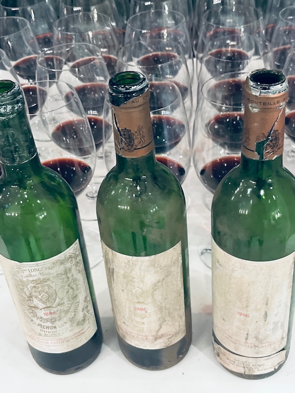 1986 CHÂTEAU BARON DE PICHON-LONGUEVILLE: Corked last time and bottle variable this time. Can be expected with such old wines at 40 years of age. Ranged from dark rich extract fullness but a bit coarse musty to favoured cleaner powerful evolving statements. Certainly many 1986 Left Bank reds are starting to come together very nicely indeed. Some classics like Mouton.