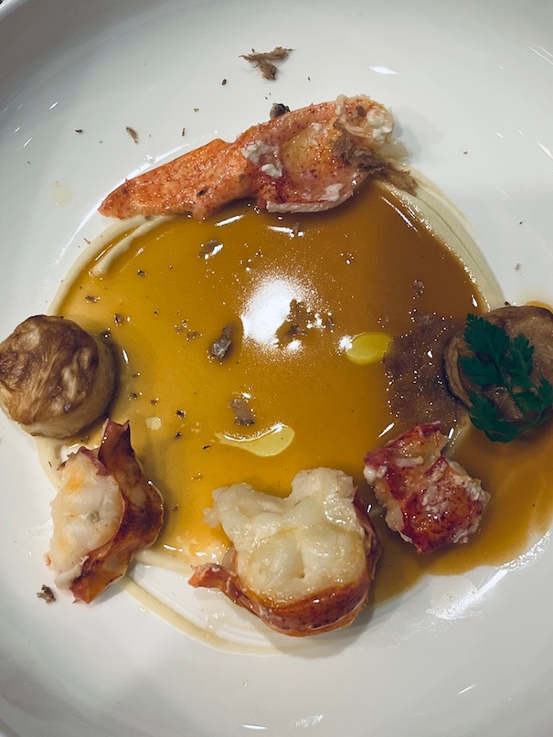 2000 CHÂTEAU BARON DE PICHON-LONGUEVILLE: This Bordeaux vintage always seems so deliciously friendly. Only medium bodied but vibrant, elegant and satisfying. Lovely but softer being more approachable than many bigger longer aging 2000s like powerful Pauillac Chateau Lynch Bages. Should hold at this top level for a while. Unique matching with an outstanding lobster white truffle presentation so very tasty.