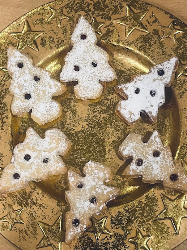 There are so many Christmnas cookie recipes out there but one of our annual special ones is “Linzer Trees”. They look beautiful, are appropriate for respecting nature and for the symbol of the Christmas tree.