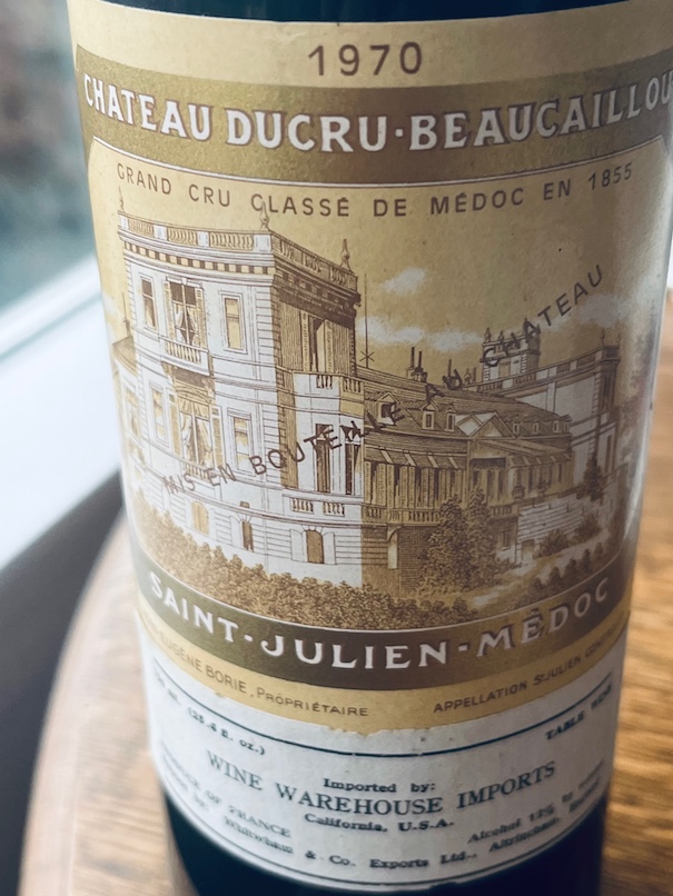 1970 CHÂTEAU DUCRU-BEAUCAILLOU SAINT-JULIEN: Big time long fan of the 1970 vintage – especially Latour, Palmer, Lynch Bages, and D-B. See November 1, 2021 review of some 1970s here. Surprised by how dark and such a young red colour this 55 year old wine is presently. See the photo. Great structure and depth. Though leaner and dry it has beautiful admirable subtle red currant/cherry with noticeable peppermint. A lot of finesse and grip. Suave, subtle, and so much elegant charm. My clear fav of the second flight but not that popular a choice with the others. You have to respect old gentle wines.