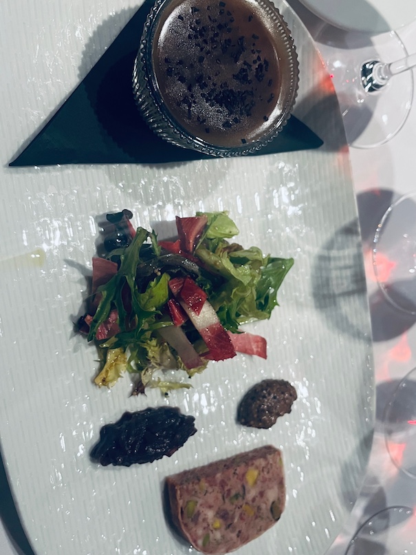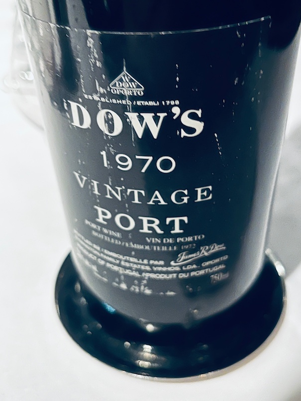 Finished up with 1970 DOW VINTAGE PORT a house that always shows excellent balanced structured acidity with the ripe yet drier fruit. Fun to compare this last of the old style Dow to our recent richer 1970 Fonseca and renowned 1963 Dow vintage but some spirit is noticed on the finish with the excellent cinnamon flavours. Delightful pairing with the chocolate hazelnut souffle with the special cherries.