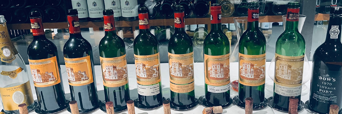 One of the very best Bordeaux wine properties is Château Ducru-Beaucaillou (means “beautiful pebbles”) in St. Julien with superb Gunzian gravel terroirs down to the Gironde estuary recognized as a “Super Second”. A long Estate history of six families over 300+ years from 1720 with more recently since 1953 gentlemanly Jean-Eugene Borie (from his father Francois since 1942) who passed in 1998 and wife Monique Borie in charge, at first with Francois Xavier Borie from 1978 to 2003, and then from 2003 till today with dedicated son Bruno-Eugene Borie. Your scribe goes way back to 1986 for my first meeting with Bruno Borie on an extensive tasting of 1966 Bordeaux (111 of them!) linked here June 18, 2018. The new era at D-B has put an emphasis on sustainable reconstruction of the vineyards and cellars plus following a strict best fruit grape selection program resulting in less production but fantastic wines – especially consistent the last 10 years. Your scribe has lots of previous experiences tasting the wines of this property and knows it fairly well. Previous detailed links in the November 29, 2021 posting here on many D-B vintages and a previous vertical commented on May 8, 2017. On December 2, 2025 the Vancouver Group of Eight held their 137th meeting at Blue Water Cafe for a goose featured dinner and D-B vertical tasting one day after the Pichon Baron vertical for comparison linked here.