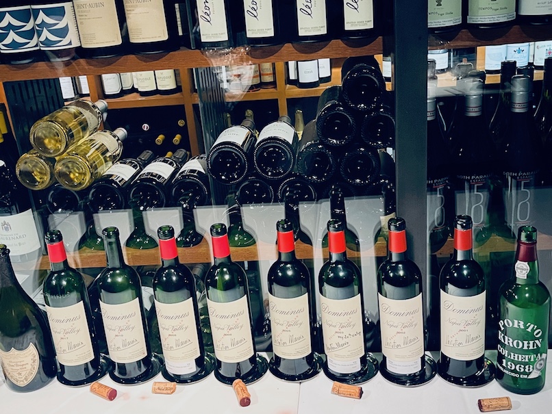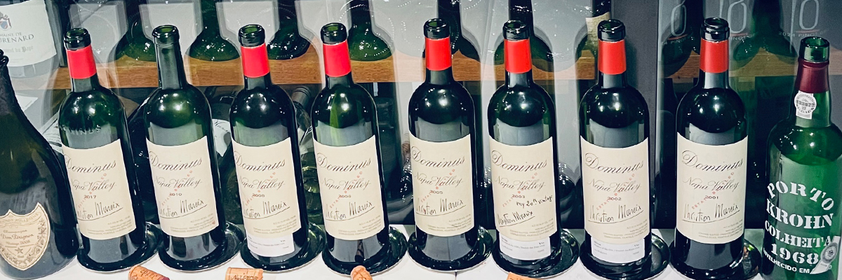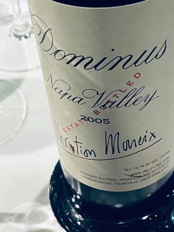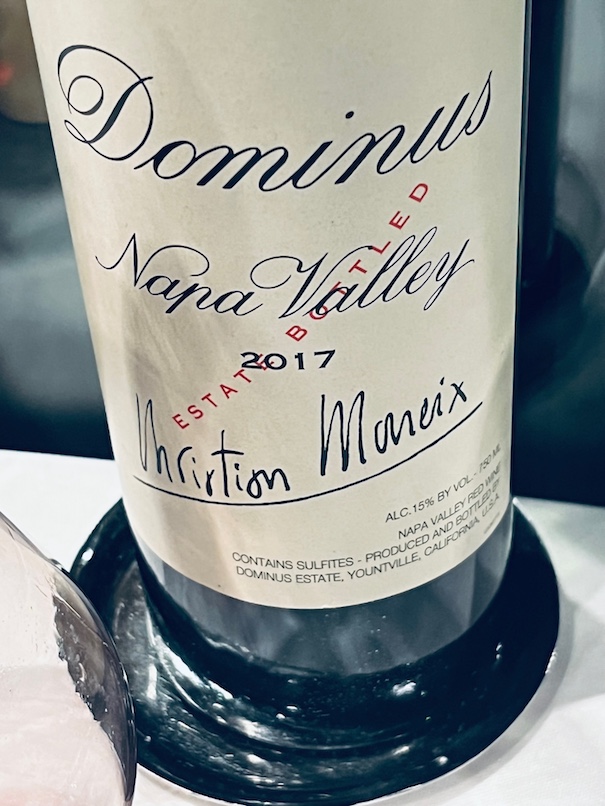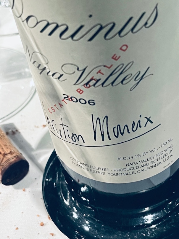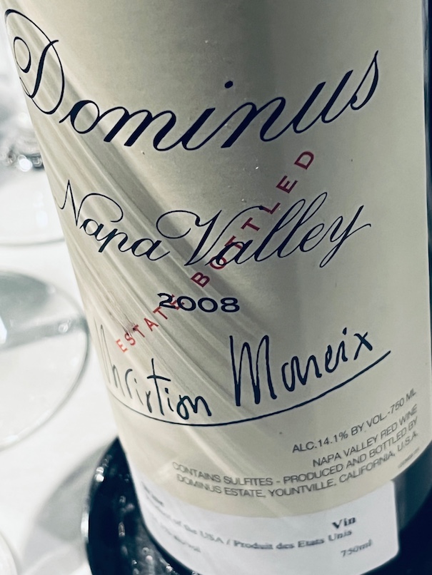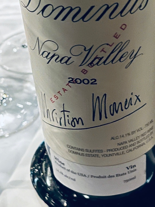 Dominus red wine is a cherished distinctive Napa Valley Cabernet treasure respected around the world. It wasn’t always so. Your scribe remembers spending 1977 vintage harvest days in Pomerol with Christian Moueix and Jean-Claude Berrouet. Learned so much from tasting the ripe grapes on the older vines at Trotanoy, tasting maturing Petrus, and our insightful conversations. They both were a fountain of wine knowledge and Christian reminisced about his studies at UC Davis and showed a keen interest in Napa Valley. This was the time of the 1976 Judgment of Paris for winning 1973 Stag’s Leap Wine Cellars Cabernet Sauvignon and other exciting wines from Napa including among others Heitz, Mayacamas, and Robert Mondavi Reserve 1974. So it was not surprising to me when in the early eighties they ventured into this emerging top quality wine region with the old Napanook Vineyard (back to the 1880s on the western hills near Yountville) which had proven itself by providing premium grapes from Bordeaux vine cuttings for Inglenook including their legendary 1941. However, Inglenook was Cabernet Sauvignon and Moueix merchants were Right Bank Merlot experts. In fact the first harvest 1982 was not released though backward tannic vintage 1983 (20% Merlot) was at around $40+ but after the more forwardly 1984 (25% Merlot) followed by the more successful elegant 1985. Somewhat controversial in the early days where The New Connoisseurs Handbook of California Wines (2nd Edition) reviewed the first 5 vintages of 1983-1987 stating: “Immense wines that are bold in curranty fruit, high in rich and creamy oak, and very tannic, they are among the leaders for intensity and drama. But in the early vintages, they also have been bothered by background earthy notes that raise troubling questions about how well they will hold up in the long run.” Such fond memories visiting with Christian at Dominus during this period where they were cutting the outside layer of the vine stems to reveal diseased budwood. Asked what they were doing and he replied “stopping GLD (Grapevine Leafroll Disease) that was limiting nutrients & water to the grapevine – and adding $5 labour costs to each bottle.” Showed the dedicated pursuit of high standards demonstrated here again and resulted in unqualified success for Dominus during the early nineties – especially 1991 and 1994.