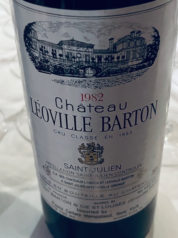 1982 CHATEAU LEOVILLE BARTON SAINT-JULIEN: 72CS/20M/8CF with no new oak used. Often “rustic” but sweet soft ready very mature bottles were here, varying somewhat. Not as successful as many 1982 St. Julien’s properties, including recent tastings of Leoville Las Cases, Gruaud-Larose, Talbot, Beychevelle, and Branaire Ducru, all shone much brighter. I wish we had the 1986 tonight because it showed brilliantly in October 2025 and this underrated, concentrated, intense beauty is starting to reveal attractive charm as well.
