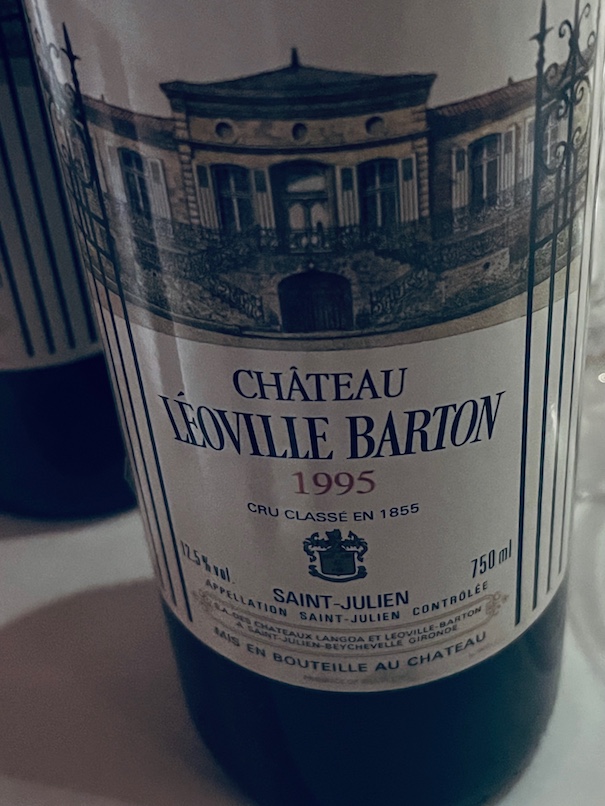 1995 CHATEAU LEOVILLE BARTON SAINT-JULIEN: 78CS/19M/3CF harvested September 19-28 at 12.5 ABV. It is aging way slower than the 2003 vintage, but it is more open and forward than the bottle showing in October 2025. Textbook older Leoville Barton. This tasting seems less conducive to slow potential, as it shows lighter in development and matures faster due to storage, though flight commentator Bill Sirett smartly stated, “It needs time.”