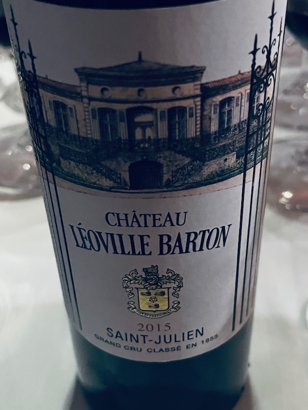 2015 CHATEAU LEOVILLE BARTON SAINT-JULIEN: 86% CS & 14% Merlot; Again, no Cab Franc in the blend with 60% new oak at only 13 ABV. Darker, deeper, riper, bigger cassis dense fruit with prominent tannins, characteristic of 2015. Patience is needed. Blair found “minerals and metallic notes, but not unpleasant with raspberries and dry, firm, finishing tannins.”