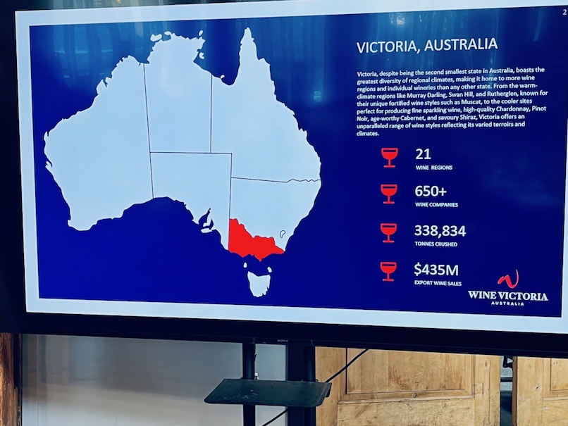 As loyal followers of this Blog are aware your scribe has been impressed by the outstanding quality of Australian Chardonnay. Several recent references have been posted here including Ask Sid on October 22, 2025, titled “Underrated Wine Region for Top Quality Chardonnay,” and on June 2, 2025, titled “Shaw + Smith Are Expressing Adelaide Hills in Australia with Vibrant Modern Classic Wines.” However, wine quality is improving right across Australia’s many regions. My good old friend from the nineties Mark Davidson, was formerly the talented sommelier in Vancouver at the William Tell Restaurant (with one of the great restauranteurs Erwin Doebeli). Mark was honoured as Sommelier of the Year in 2001 & Spirited Industry Professional in 2014 (a year after yours truly) by @VanWineFest, and he is now doing a terrific job as Head of Education Development – Americas for wineaustralia.com. On February 19, 2026, Mark was in town to provide an informative update on the diverse Victoria region to the wine trade at Vancouver Urban Winery. At his seminar, he spotlighted and explained seven distinct sub-regions within Wine Victoria (out of twenty-one shown on the map), offering valuable wine insights. Frost has been a recent troubling issue in Australia with late 2024 and 2025 (October) resulting in consecutive smaller harvests. Afterward, there was a plethora of wines to taste from the region, including mostly Yarra Valley sub-region selections like the Fontaine label from Dominique Portet (I still have a bottle of his amazing 1978 Taltarni Cabernet Sauvignon) and Ben Portet’s Chardonnay (13% ABV) & Cabernets (a blend of 60% CS, 29% M, 6% Malbec, 5% CF at 13.5% ABV), both from the 2024 vintage. The main event with brief comments: