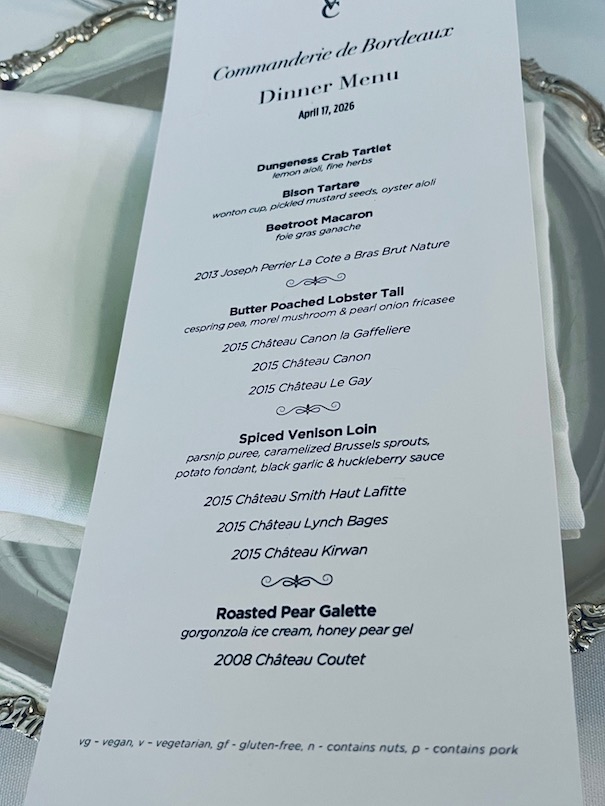 Your scribe has been fortunate to study the 2015 vintage of red Bordeaux at two horizontal tastings within a month. The first of nine wines for the March 17 IWFS Vancouver event is linked here, with more details. A second selection featured six higher classification wines with three each from the Right Bank and the Left Bank. La Commanderie de Bordeaux Vancouver organized the event on April 17 at The Vancouver Club, led by Le Maitre Fred Withers and Cellarmaster Alvin Nirenberg. The first session, featuring more affordable wines gave an impression of freshness with variability though the star was a Margaux Fourth Growth Chateau Marquis De Terme. Again, the Margaux appellation showed regional favour in 2015 with an excellent Chateau Kirwan. Look for additional Margaux wines from the 2015 vintage!