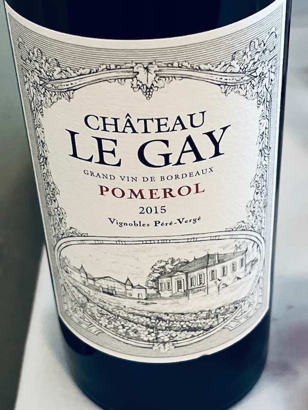 2015 CHATEAU LE GAY POMEROL Vignobles Pere-Verge picked this highest 90% Merlot & 10% Cabernet Franc from Pomerol between September 27 and October 8; it spent 18 months in 100% new oak at 14.5% ABV. Lovely, but it seems less fragrant, less densely opulent, and less charming than expected for a top Pomerol in this vintage. More oaky herbaceous notes for me. Enjoy it now. Not in the league of outstanding quality from an exceptional 2015 Pomerol group that includes Vieux Chateau Certan, La Conseillante & L’Evangile.